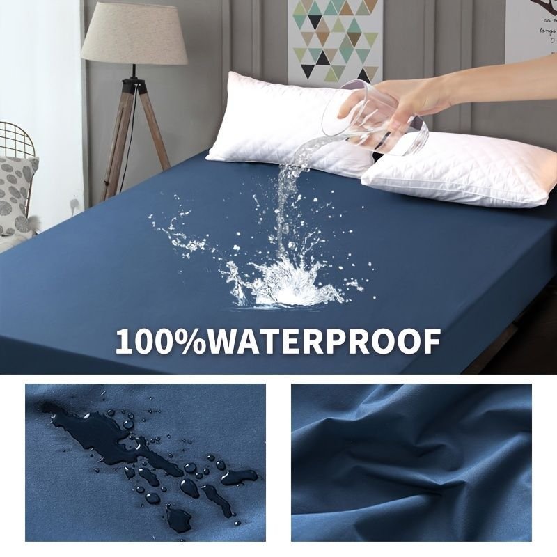 1pc Blue Waterproof Fitted Sheet; Solid Color Brushed Fitted Sheet; Soft Bedding 1pc Blue Waterproof Fitted Sheet; Solid Color Brushed Fitted Sheet; Soft Bedding 1pc Blue Waterproof Fitted Sheet; Solid Color Brushed Fitted Sheet; Soft Bedding