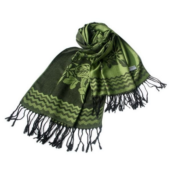 Blancho Bedding -Pa-616-10 Green Base Peony Flowers Patterns Exquisitely Soft Woven Pashmina/Shawl/Scarf