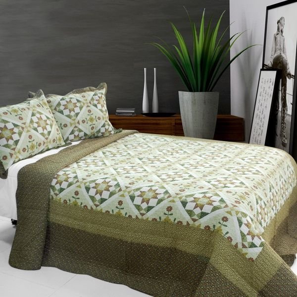 Set includes a quilt and two quilted shams. Shell and fill are cotton. For convenience, all bedding components are machine washable on cold in the gentle cycle and can be dried on low heat and will last you years. Intricate vermicelli quilting provides a rich surface texture. This vermicelli-quilted quilt set will refresh your bedroom decor instantly, create a cozy and inviting atmosphere and is sure to transform the look of your bedroom or guest room. Dimensions: Full/Queen quilt: 90 inches x 98 inches. Standard sham: 20 inches x 26 inches. Features intricate machine/hand-stitching patterns and beautiful prints with timeless appeal.Creates a cozy and inviting atmosphere and is sure to transform the look of your bedroom.Gives the finishing touch to your room decor; Enjoy a good night's sleep in a luxurious quilt set.Pre-washed, pre-shrunk, reversible and vermicelli-quilted for elegance and durability.Soft materials and high tenacity; Fine and concentrated stitches; Machine washable and dryable.