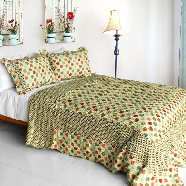 [Colorful Dots] Cotton 3PC Vermicelli-Quilted Dots Printed Quilt Set (Full/Queen Size) [Colorful Dots] Cotton 3PC Vermicelli-Quilted Dots Printed Quilt Set (Full/Queen Size)