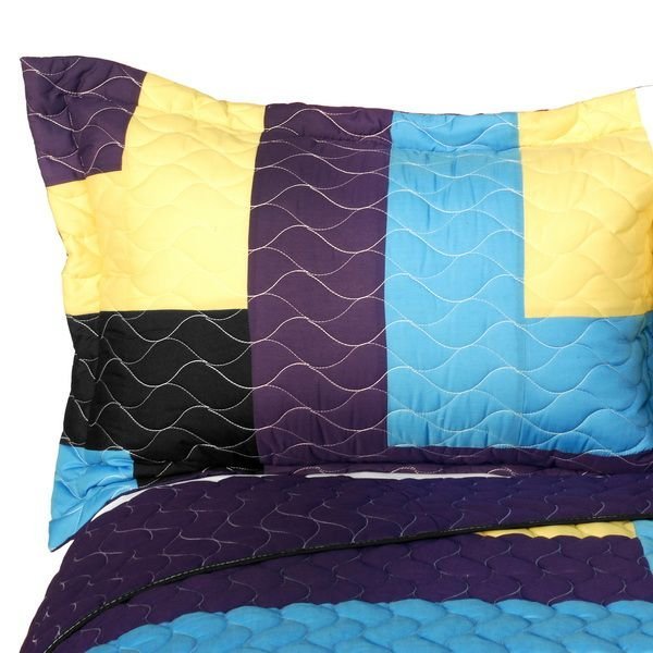 [Colors Quartet] 3PC Vermicelli-Quilted Patchwork Quilt Set (Full/Queen Size) [Colors Quartet] 3PC Vermicelli-Quilted Patchwork Quilt Set (Full/Queen Size) [Colors Quartet] 3PC Vermicelli-Quilted Patchwork Quilt Set (Full/Queen Size)