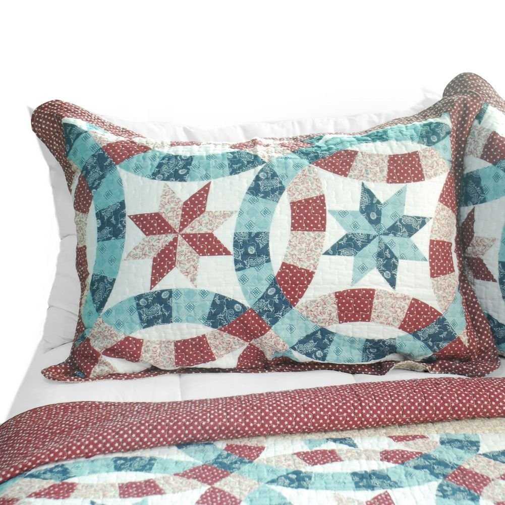 Set includes a quilt and two quilted shams. Shell and fill are 100% cotton. For convenience, all bedding components are machine washable on cold in the gentle cycle and can be dried on low heat and will last you years. Intricate vermicelli quilting provides a rich surface texture. This vermicelli-quilted quilt set will refresh your bedroom decor instantly, create a cozy and inviting atmosphere and is sure to transform the look of your bedroom or guest room. Dimensions: Full/Queen quilt: 90 inches x 98 inches Standard sham: 20 inches x 26 inches. Features intricate machine/hand-stitching patterns and beautiful prints with timeless appeal. Creates a cozy and inviting atmosphere and is sure to transform the look of your bedroom. Gives the finishing touch to your room decor; Enjoy a good night's sleep in a luxurious quilt set. Pre-washed, pre-shrunk, reversible and vermicelli-quilted for elegance and durability. Soft materials and high tenacity; Fine and concentrated stitches; Machine washable and dryable.