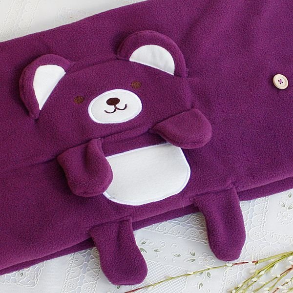 Home > [Happy Bear - Purple] Embroidered Applique Coral Fleece Baby Throw Blanket (42.5 by 59.1 inches)