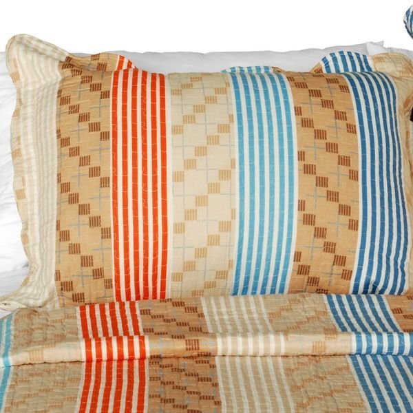 [Million Miles] Cotton 3PC Vermicelli-Quilted Striped Printed Quilt Set (Full/Queen Size) [Million Miles] Cotton 3PC Vermicelli-Quilted Striped Printed Quilt Set (Full/Queen Size) [Million Miles] Cotton 3PC Vermicelli-Quilted Striped Printed Quilt Set (Full/Queen Size)