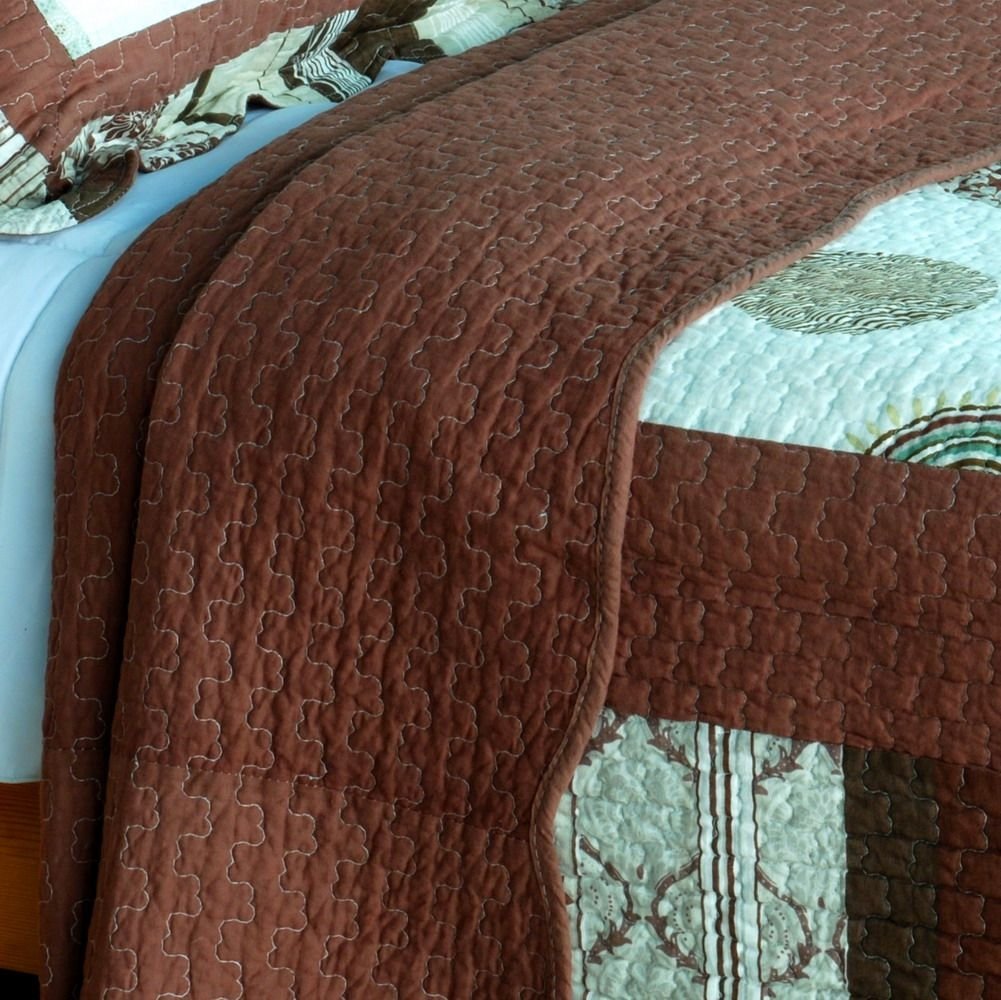 Set includes a quilt and two quilted shams. Shell and fill are cotton. For convenience, all bedding components are machine washable on cold in the gentle cycle and can be dried on low heat and will last you years. Intricate vermicelli quilting provides a rich surface texture. This vermicelli-quilted quilt set will refresh your bedroom decor instantly, create a cozy and inviting atmosphere and is sure to transform the look of your bedroom or guest room. Dimensions: Full/Queen quilt: 90 inches x 98 inches. Standard sham: 20 inches x 26 inches. Features intricate machine/hand-stitching patterns and beautiful prints with timeless appeal.Creates a cozy and inviting atmosphere and is sure to transform the look of your bedroom.Gives the finishing touch to your room decor; Enjoy a good night's sleep in a luxurious quilt set.Pre-washed, pre-shrunk, reversible and vermicelli-quilted for elegance and durability.Soft materials and high tenacity; Fine and concentrated stitches; Machine washable and dryable.