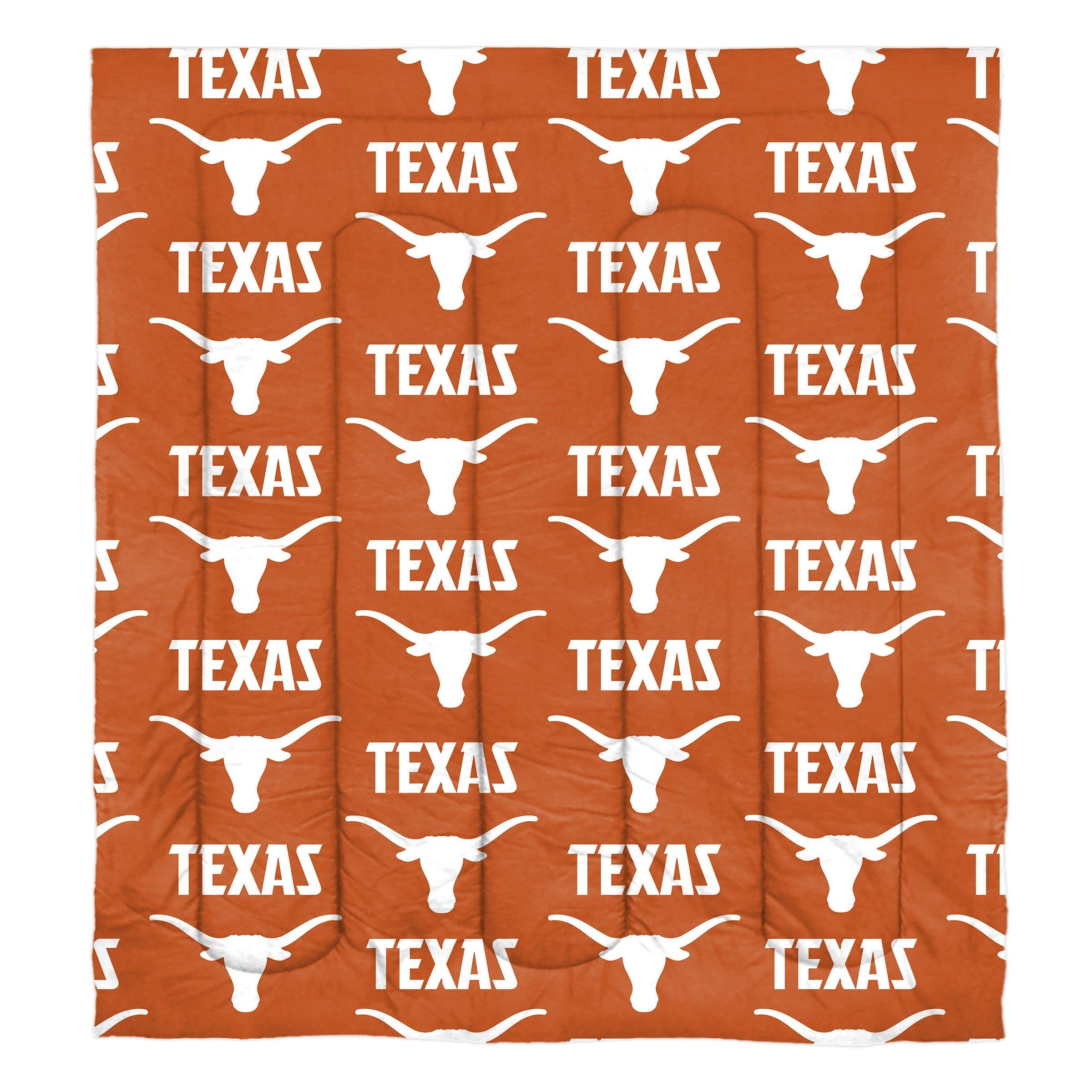 Features a repeating print of the team's name, logo and colors on the comforter, pillowcases and sheets.
