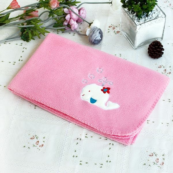 Home > [White Whale - Pink] Embroidered Applique Coral Fleece Baby Throw Blanket (29.5 by 39.4 inches)