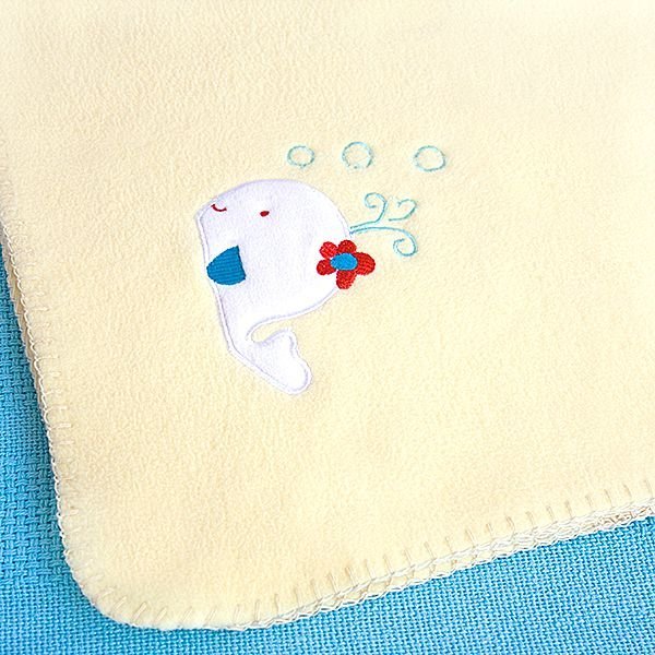 Home > [White Whale - Yellow] Embroidered Applique Coral Fleece Baby Throw Blanket (29.5 by 39.4 inches)